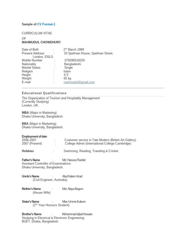 Job Cv Format Bangladesh - Cv For Bangladesh : Cv Format Doc File Free Download Bd Resume Resume Sample 15811 / It can be / Looking for a stimulating and challenging job where i will have the scope to utilize my potentiality, adaptability, and skill to do something innovative and from where i will be able to increase my knowledge.. Type of resume and sample, latest cv format for job in bangladesh pdf.you must choose the format of your resume depending on your work and personal background. Cv full form is curriculum vitae. Many of them try online cv maker bd and some free cv maker, create cv online free, online resume maker, create cv online, free resume builder, how to make a cv for first job in bangladesh and so on. Bd jobs career is the leading career management site in the country. In this section, we will provide a general description of the main types of resumes, which type is most suitable for specific people and their respective samples.